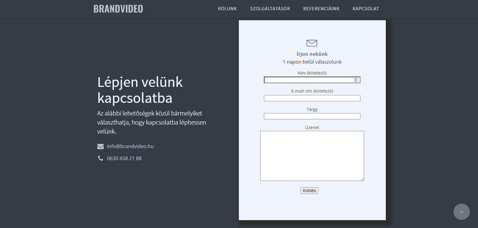 A brandvideo.hu honlapja ismét egy remek példa a „one-page” layout weboldalakra. Egy oldal is el tudja mondani, hogy milyen szolgáltatásokat biztosít a cég vagy vállalkozó. Egy első sorban videózással foglalkozó csapat honlapját készíthettem el. Fontos szempont volt, hogy letisztult és egymást logikusan követő oldal-elemek szerepeljenek. Szerettek volna ezen felül egy videó-fejlécet is, amelyben munkáik válogatása jelenik meg. Az oldal szekciókra bontva bemutatja a Brandvideo szolgáltatásait, referenciáit. Kapcsolati form és elérhetőség egyaránt található a honlapon, így biztosan elérhetőek az érdeklődők számára. A Brandvideo kiváló szolgáltatásokat nyújt bárki számára, aki videóban szeretné megmutatni magát, cégét vagy szolgáltatásait. Remek szakemberek és kiváló csapat.