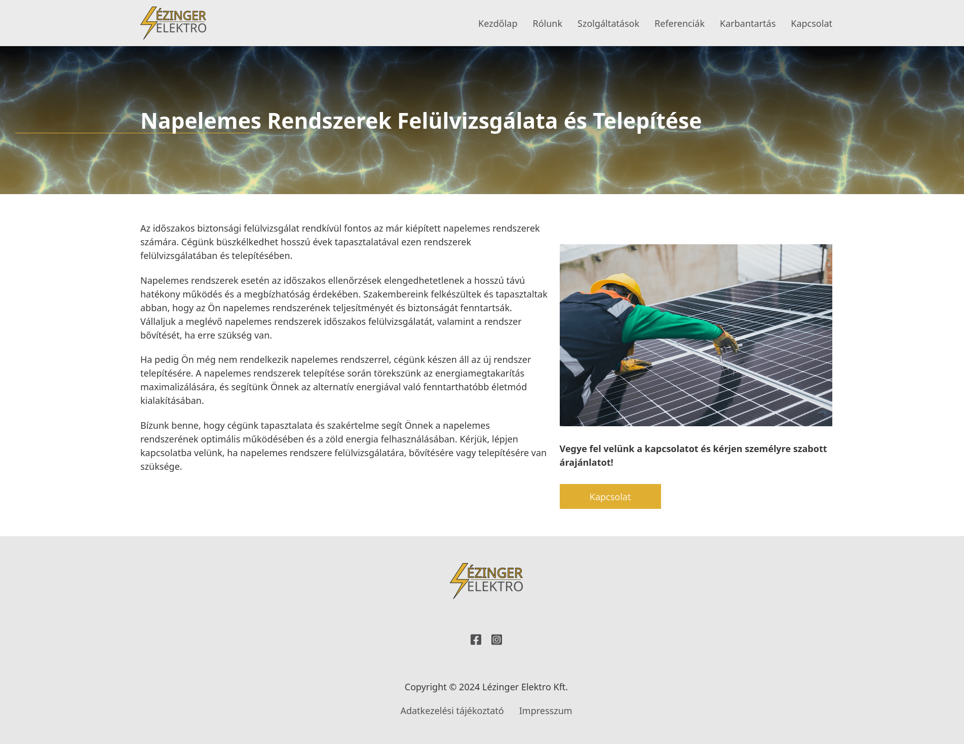 A Lézinger Elektro Kft. – Weboldal fejlesztése