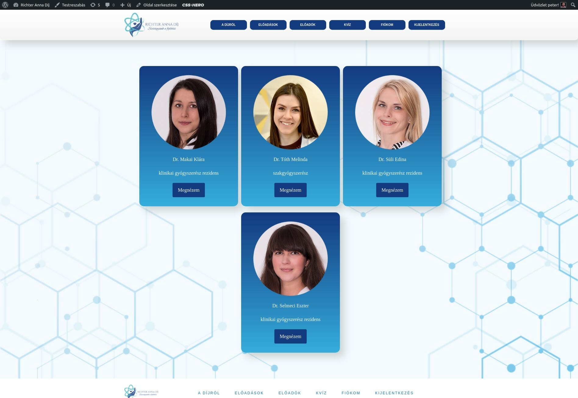 A Richter Anna díj weboldal fejlesztésekor nemcsak a majdani tartalomfeltöltők számára könnyű kezelést kellett szem előtt tartani, hanem a látogatóknak is egyértelművé kellett tenni minden funkciót. Tehát itt az egyszerűség volt a szempont. Az oldal kapcsán ugyanakkor olyan megoldást kellett alkalmazni, amivel a nem regisztrált felhasználók csak minimális tartalomhoz férhettek hozzá. Ezek mellett egy kvíz is helyet kapott az weboldalon, amit a regisztrált felhasználók tölthettek ki.